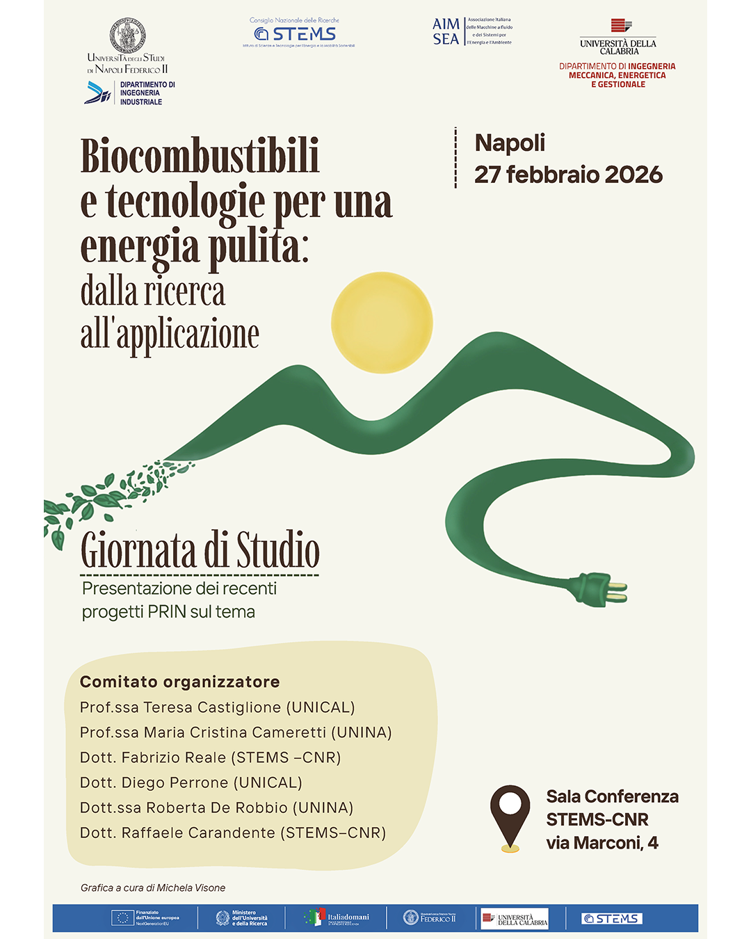 Il prossimo 27 febbraio 2026 si terrà, a Napoli presso l’Istituto STEMS del CNR, la Giornata di Studio dal titolo 'Biocombustibili e tecnologie per un'energia pulita: dalla ricerca all'applicazione' che rappresenterà la giornata conclusiva del progetto PRIN "Bio-Fire Forever", sviluppato congiuntamente dall'Università della Calabria, dall'Università degli Studi di Napoli Federico II e dallo STEMS – CNR.